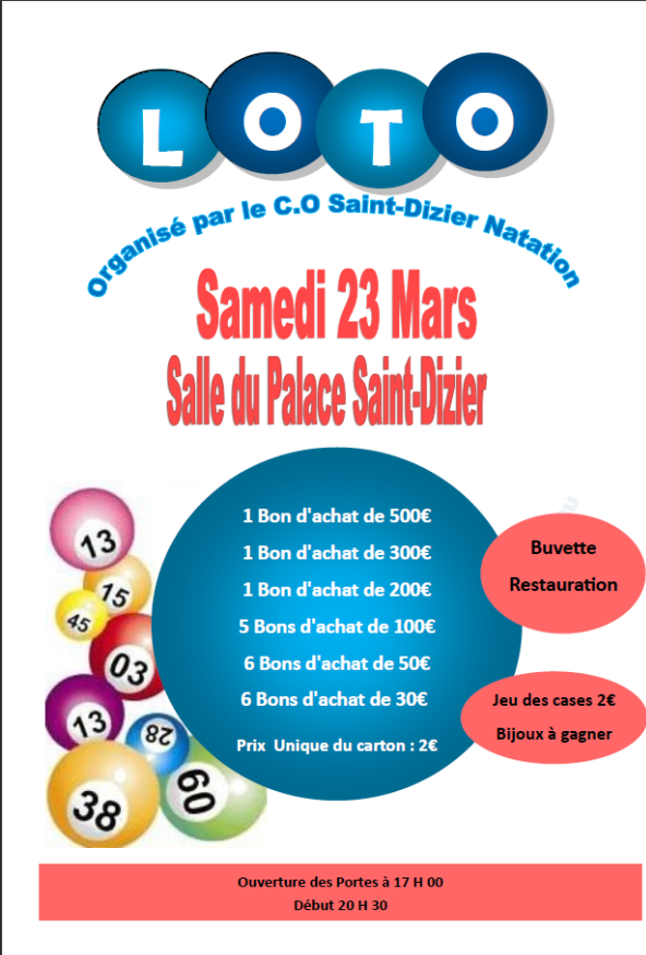 Chaque année, le C.O Saint-Dizier Natation organise son loto avec la clé des dizaines de lots. Il est ainsi possible de remporter, par exemple, un bon d'achat de 500€